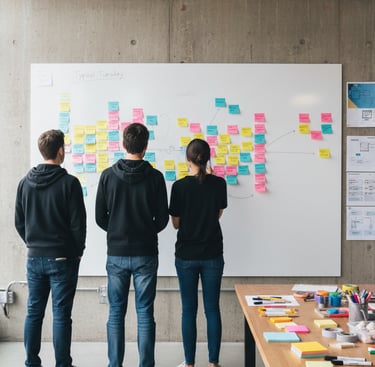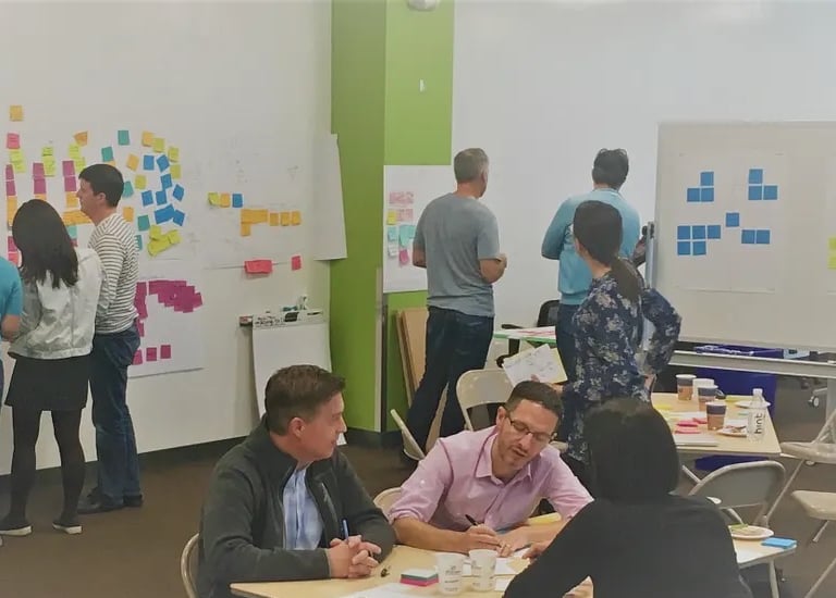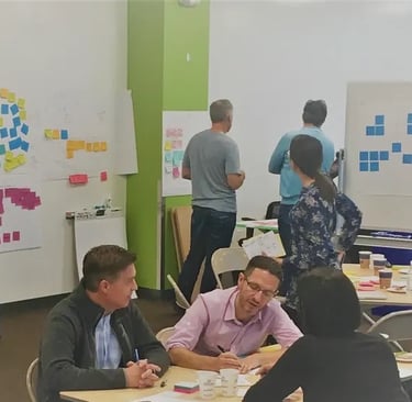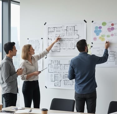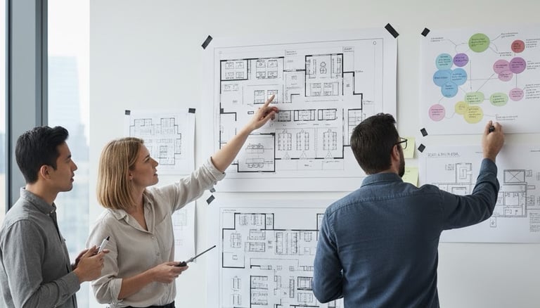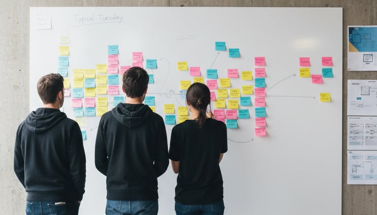 Participants mapped their typical Tuesday with sticky notes – meetings, focus work, collaboration moments. Pattern emerged: 40% of their day involved waiting for others or searching for available meeting spaces.